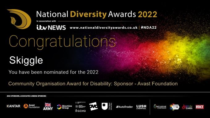 National Diversity Awards 2022 6 May 2022 Skiggle has been nominated for the ‘Community Organisation Award for Disability’ at the National Diversity Awards 2022! "The breathtaking Liverpool Anglican Cathedral will play host to this year’s… Read more